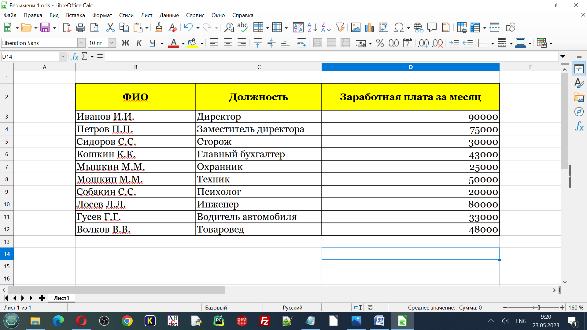 Создайте таблицу в LibreOffice Calc и сохраните ее в соответствующем документе.
